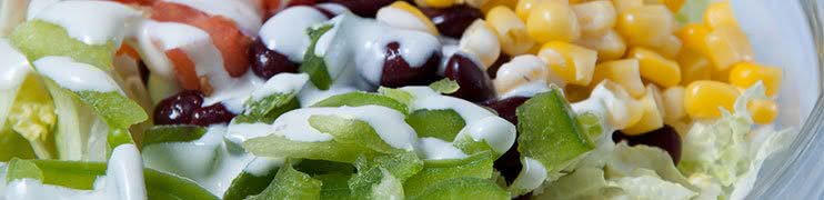 solata, paradižnik, koruza, paprika, fižol, piščanec na žaru, postreženo s kubanskim kruhom