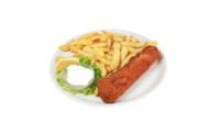 piščanec paniran v corn fleksu,pomfri ,majoneza. Fotgrafija je simbolična
