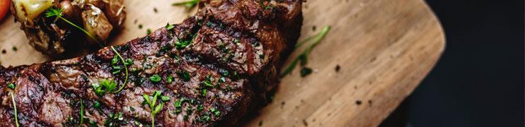s pečenim krompirjem, zelenjavo, mešano solato in ameriško solato