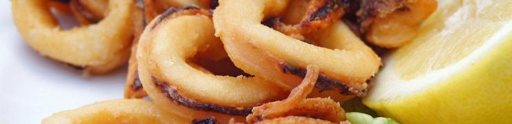 Ocvrti kalamari s pomfrijem, lepinja, limona