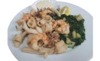 File brancina na žaru, očiščeni gamberi na žaru, kalamari na žaru, ocvrti kalamari, mešana priloga, tržaška in tatarska omaka