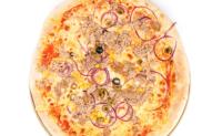 Pelati, šunka, jalopeno, nacho sir, koruza, rdeči fižol, pikantna salama, oliva. Fotografija je simbolična