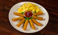 Ocvrta Mozzarela. Postreženo z Wedges kompirčkom in BBQ omako