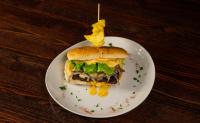 ciabatta, goveja pleskavica, slanina, cheddar sir, sir, solata, čebula in hišna omaka. Postreženo z Wedges kompirčkom in BBQ omako