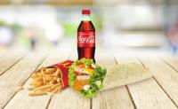 + Pommes frites, pijača po izbiri in 2 omaki po izbiri